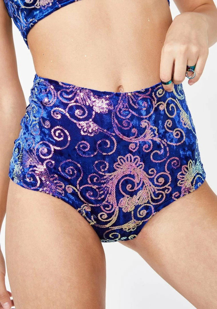 got you ruling the galaxy babe! Build your throne on the moon in these supa soft velvet shorts that have a high waist fit, a cheeky booty NΓ’ΒΒ iridescent sequin embroidery all ova.