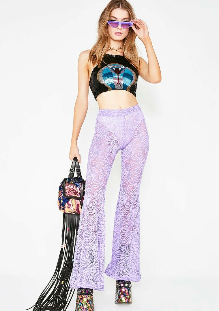 cuz ya canΓ’ΒΒt help but show off ya legz, even with pants on! Look irresistible AF in these sexxy lil bell bottoms that have a semi-sheer lace construction, a stretchy NΓ’ΒΒ high-waisted fit, and flirty flared legs thatΓ’ΒΒll have ya ready to move ya body like a cyclone bb.