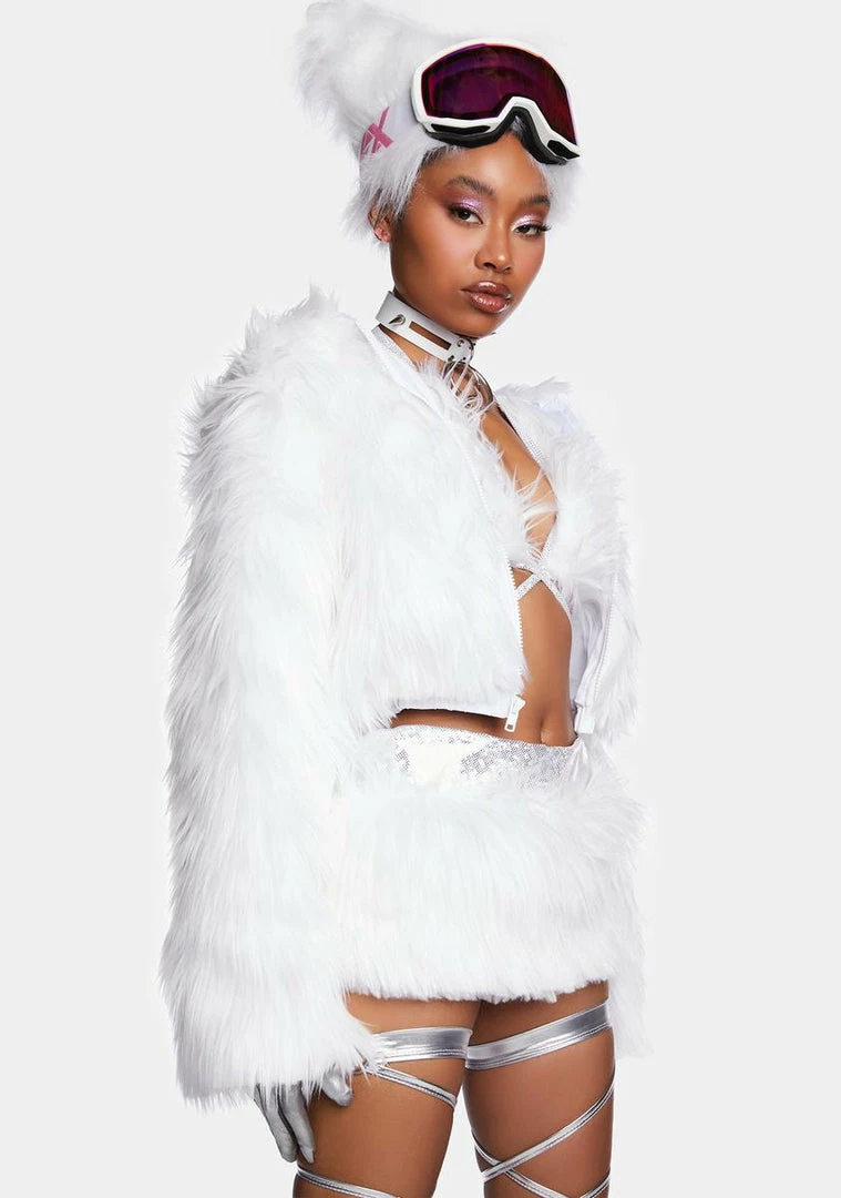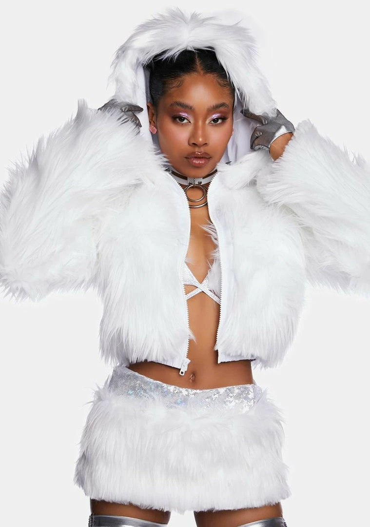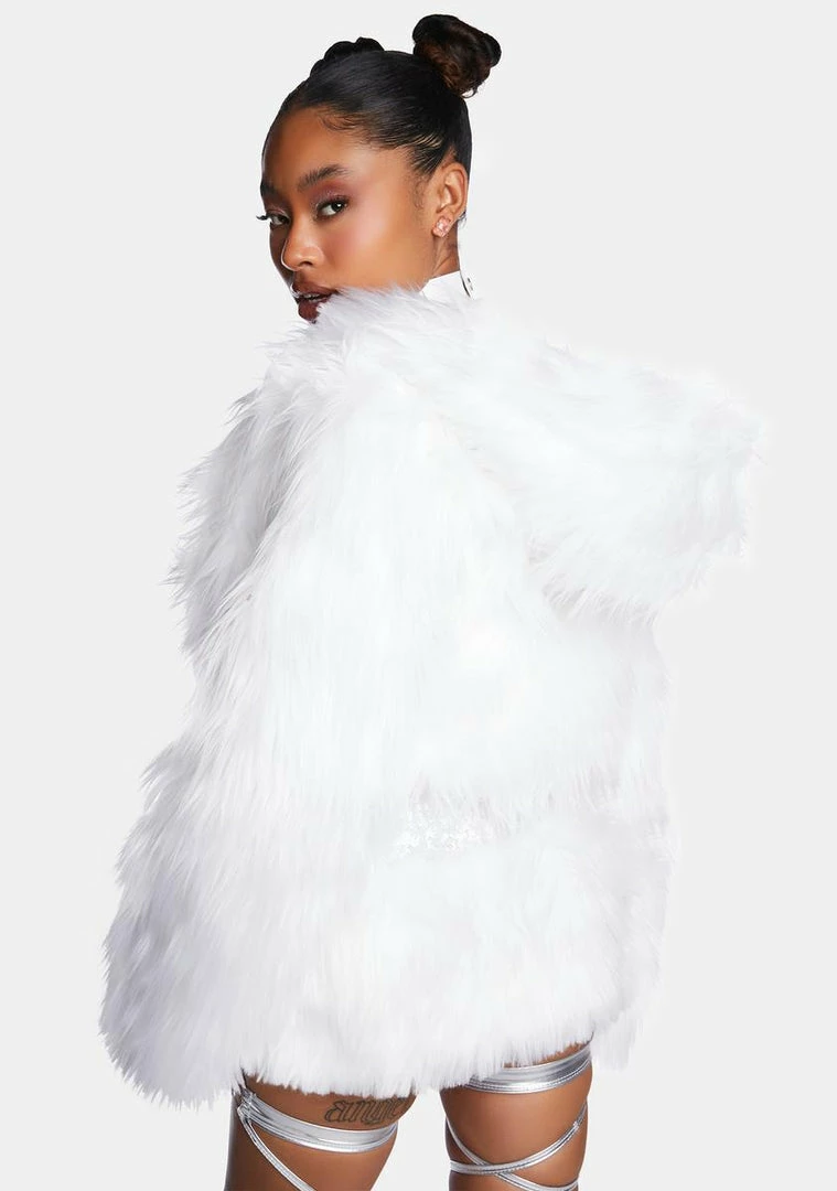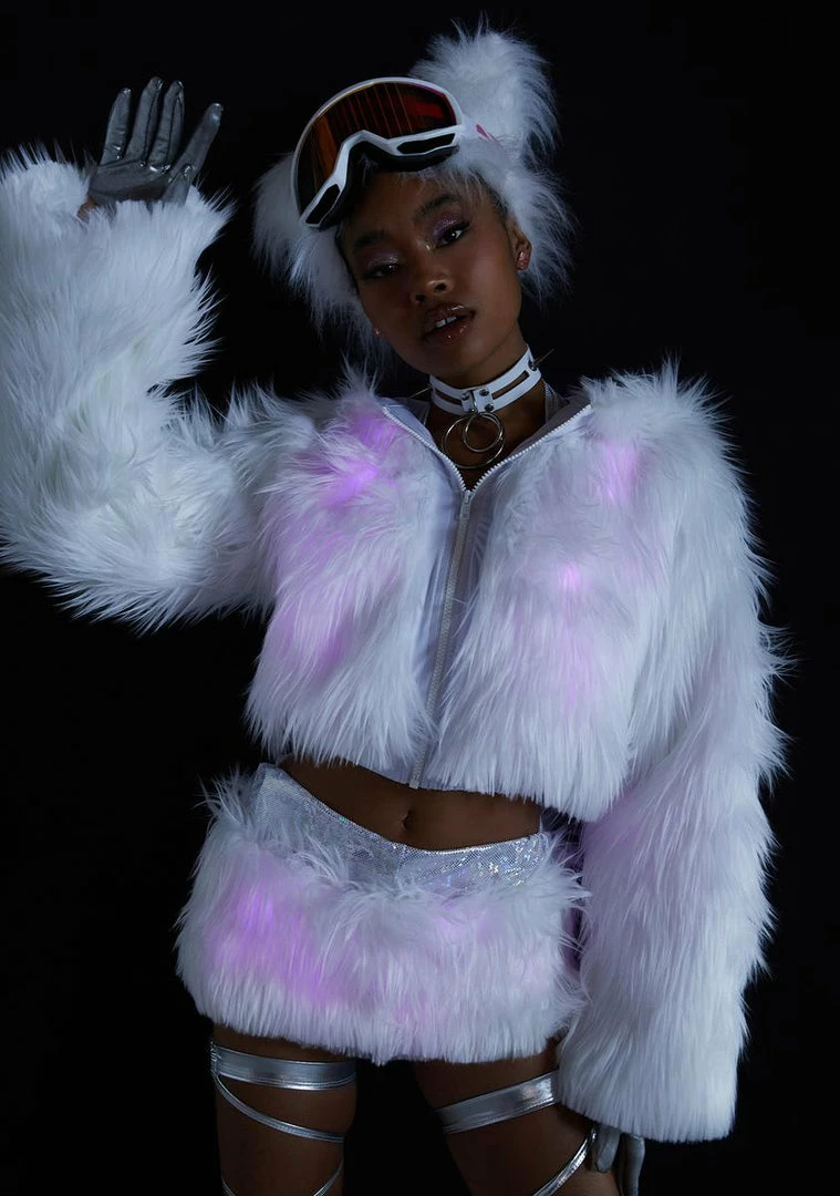 turn up the lights in here! This long sleeve faux fur jacket lights up in a green hue.