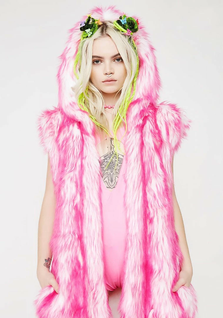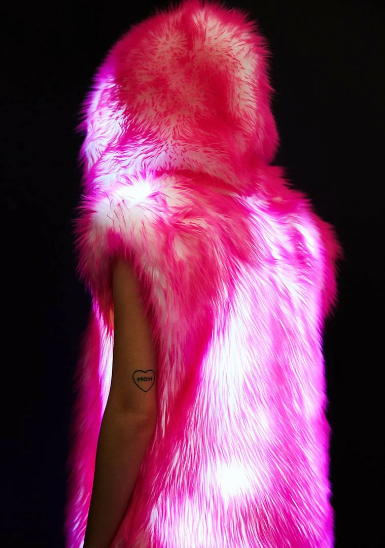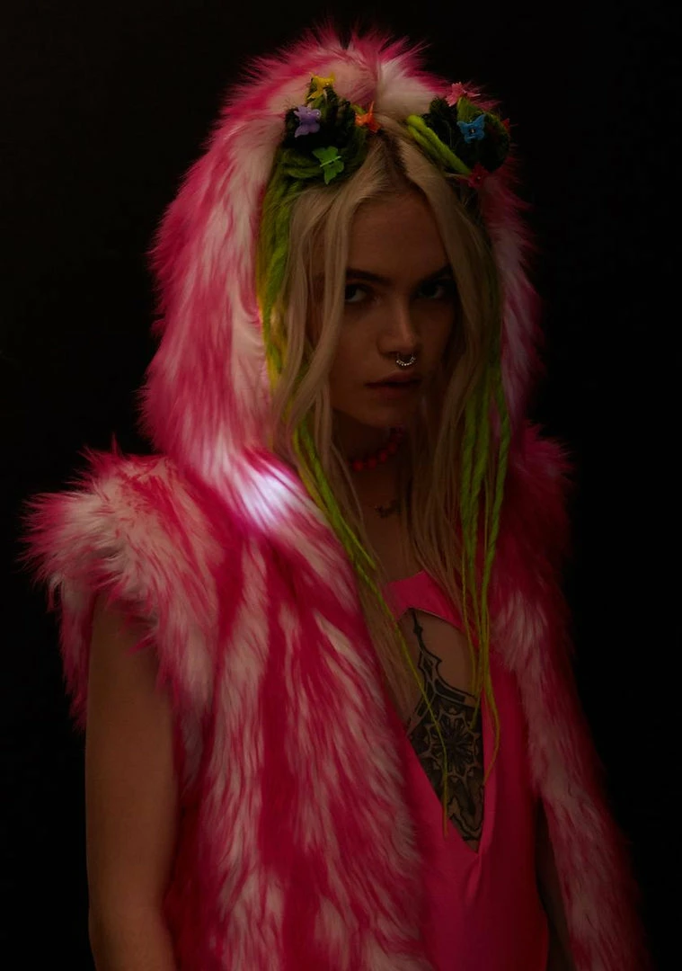 Flash Sale π J Valentine Pink Light-Up Hooded Faux Fur Duster β€οΈ
