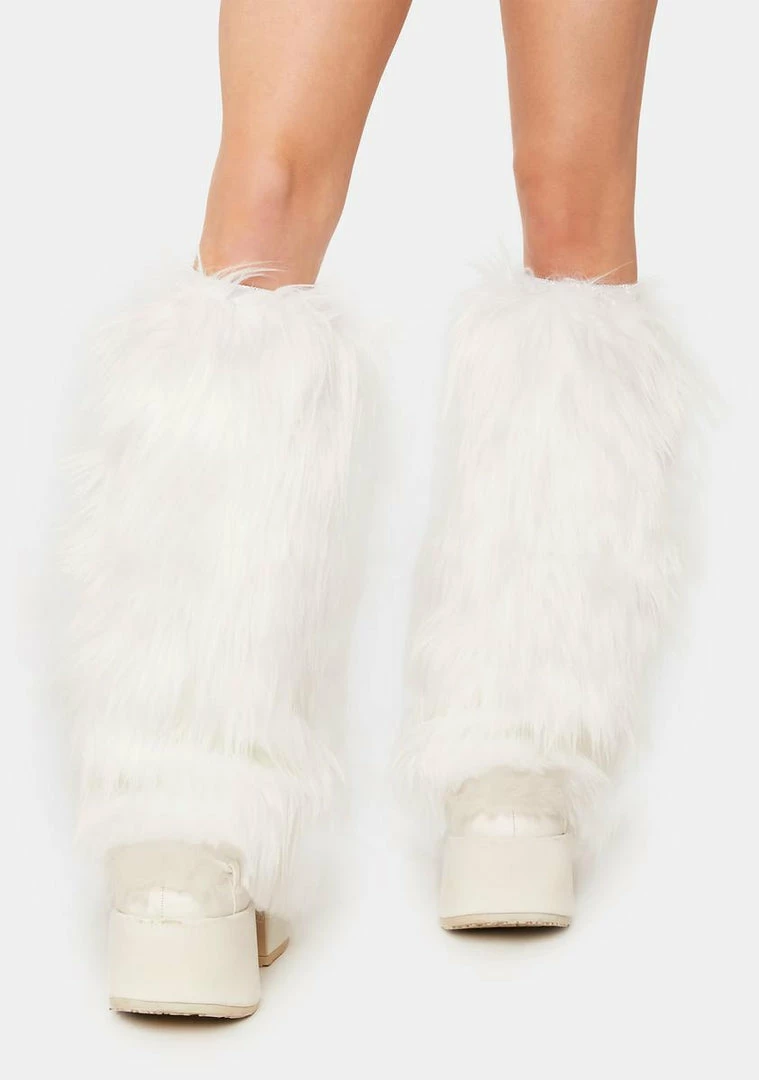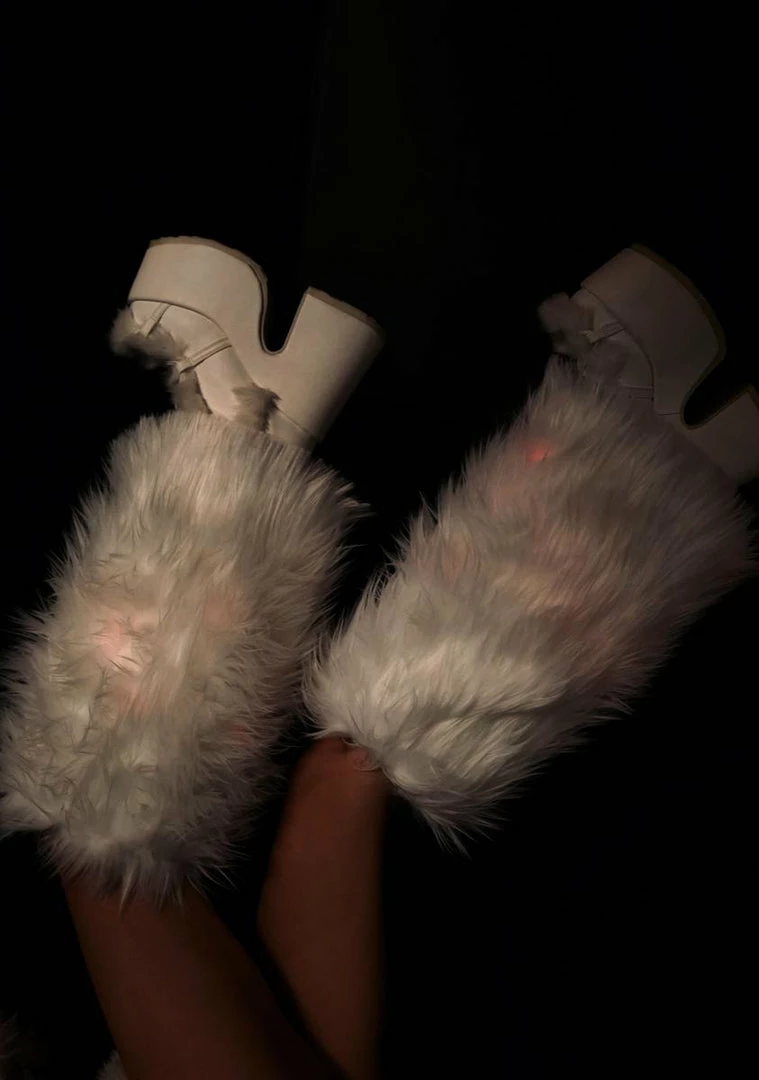 got you under the electric sky. Rave all night in these cozy faux fur leg warmers that light up in an orange hue.