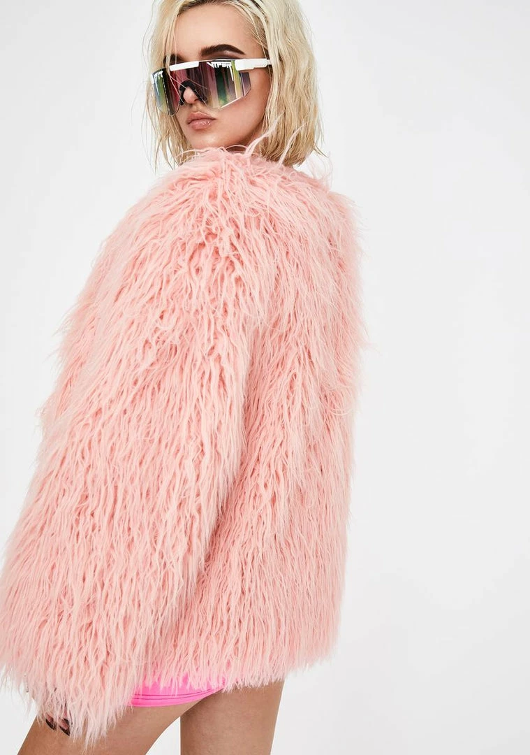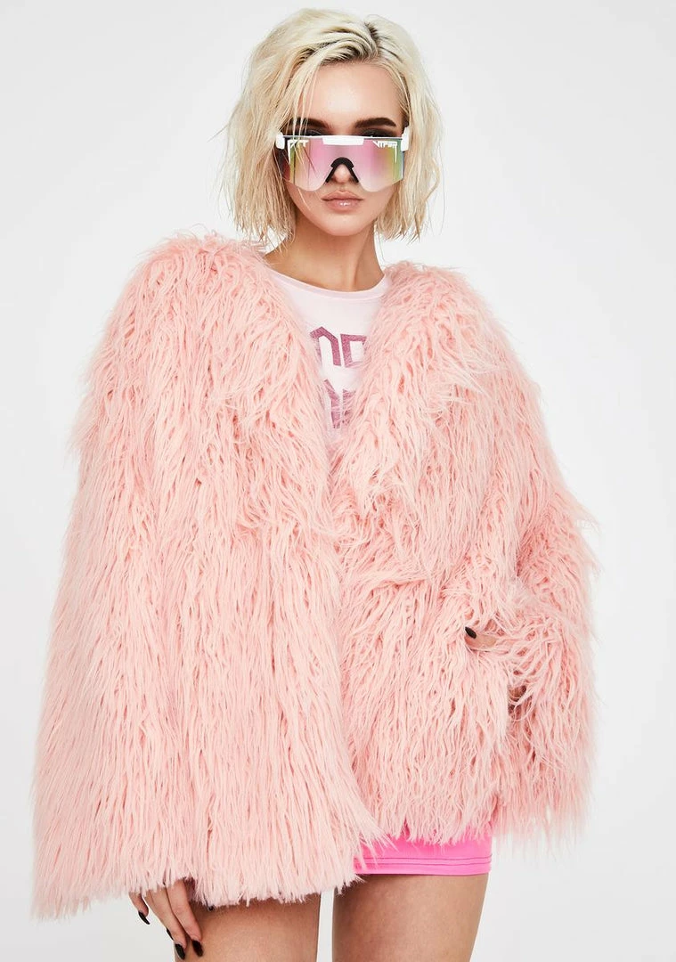 cuz youâre in a magical state of ecstasy babe! Dance under the moonlight in this cute AF fuzzy coat that has lapel details, two pocket on the sides, a secret back zip stash pocket, and an open front design.